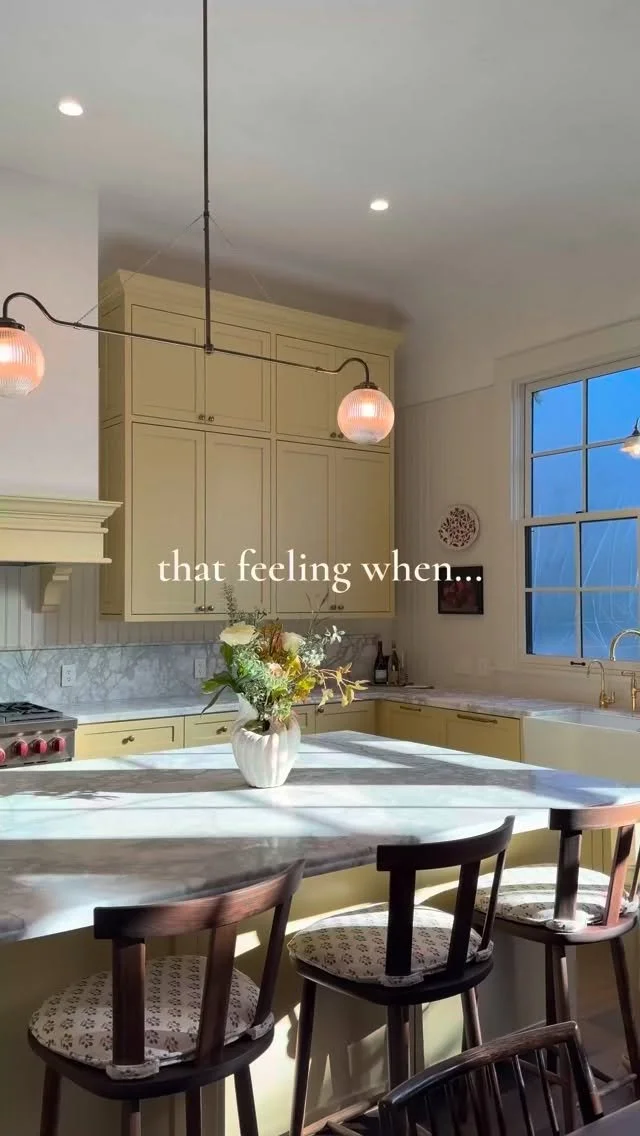The renovation of this modern barn pairs the sweetest horse-patterned paper with a modern floating sink and our favorite Watermark faucet.